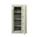 Corps : a double enveloppe de tôles d’acier, de 70 mm d’épaisseur totale contenant notre composite extra dur, tassé par vibrations. Il présente d’excellentes qualités réfractaires et une très grande résistance aux outils mécanique. - Porte : épaisseur totale de 135mm. Elle comporte la même protection que le corps. Elle est suspendue sur des pivots extérieures permettant l’ouverture de celle -ci à 180°. Son châssis est composé de profils spéciaux formant escalier sur les 4 cotés.